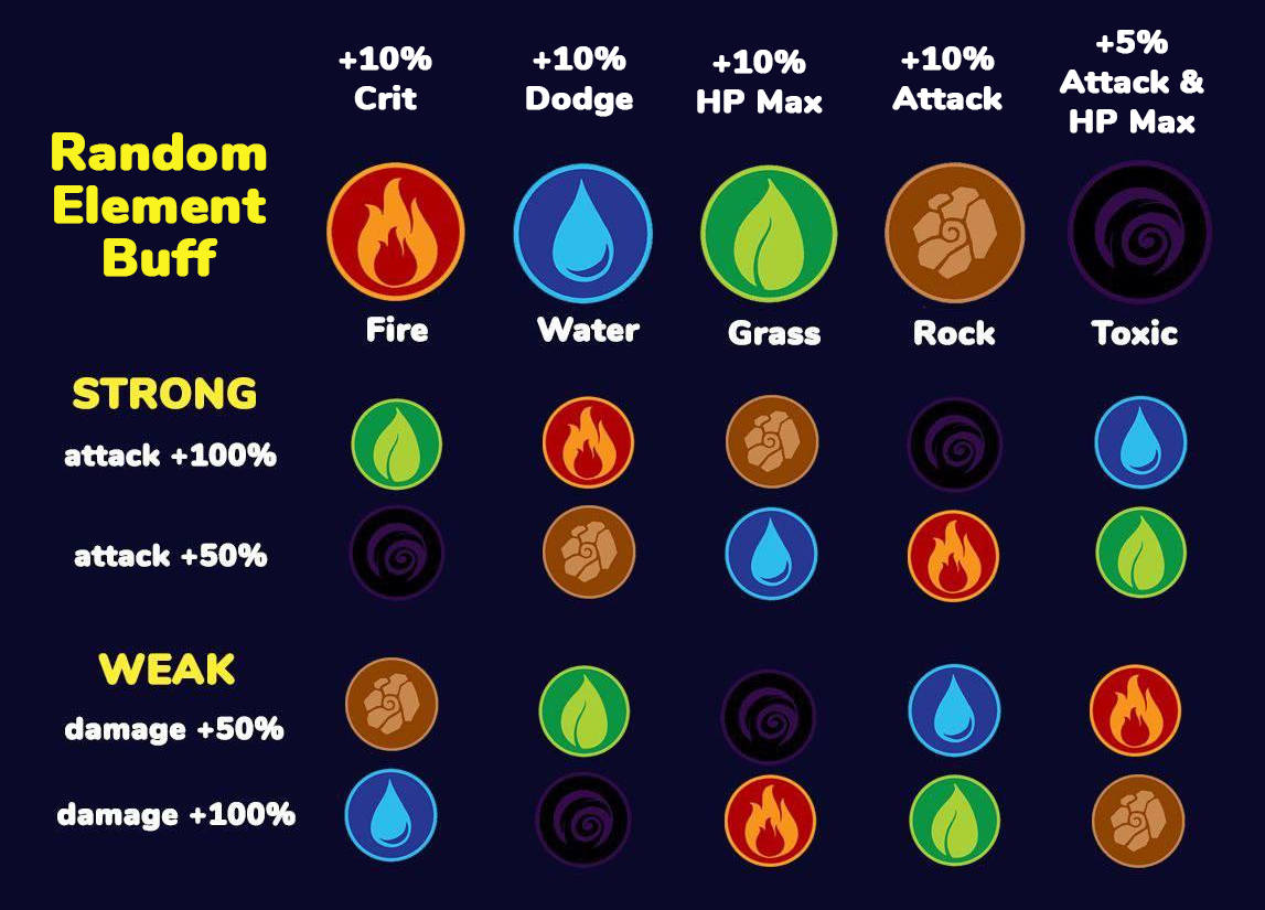 Rock constrains fire (ATK+50%) and toxin (ATK+100%).